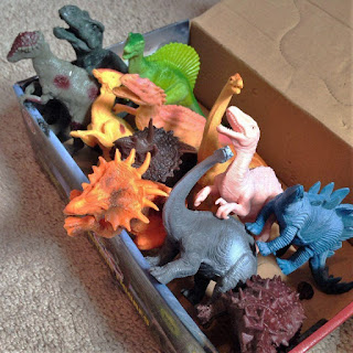 First, you need to cut your dinos in half with your X-Acto. Some people use just the dino heads, some just their tails. I used both. I cut them right above their hip bones.